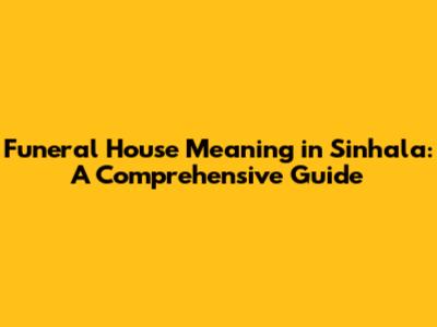 Funeral House Meaning In Sinhala: A Comprehensive Guide