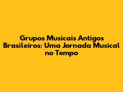 Olá, pessoal! Se você, assim como eu, adora se perder na música brasileira, prepare-se para uma viagem no tempo! Vamos explorar os grupos musicais antigos brasileiros, aqueles que plantaram as sementes do que ouvimos hoje. É uma verdadeira aula de história, cultura e, claro, muita música boa. Preparem seus ouvidos e seus corações, porque a jornada será longa e cheia de emoção.