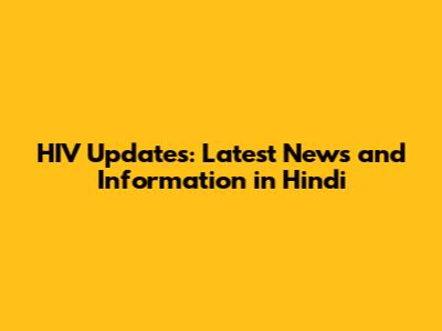 HIV Updates: Latest News And Information In Hindi