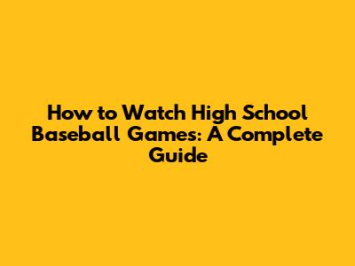 How To Watch High School Baseball Games: A Complete Guide