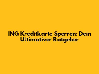 ING Kreditkarte Sperren: So Geht's Schnell & Einfach!
