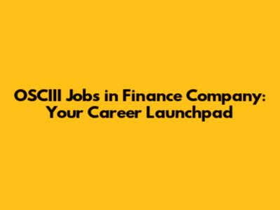 OSCIII Roles: Your Gateway To A Finance Career