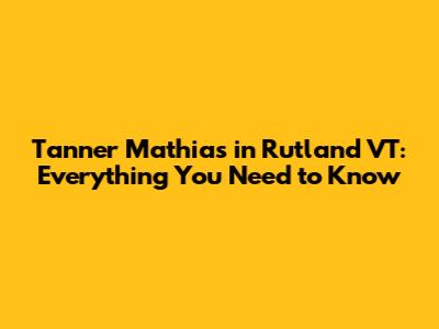Hey guys! Today, we're diving deep into everything you need to know about Tanner Mathias in Rutland, Vermont. Whether you're a local, planning a visit, or just curious, we've got you covered. We'll explore who Tanner Mathias is, what makes Rutland special, and how these two intersect. Get ready for an engaging and informative journey!