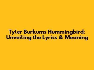 Hey guys! Ever stumbled upon a song that just sticks with you? For me, Tyler Burkum's "Hummingbird" is one of those tracks. It's got this chill vibe, a beautiful melody, and lyrics that make you think. So, let's dive deep into the world of Tyler Burkum and explore the lyrics and possible meanings behind his song, "Hummingbird."